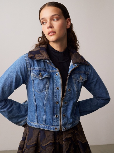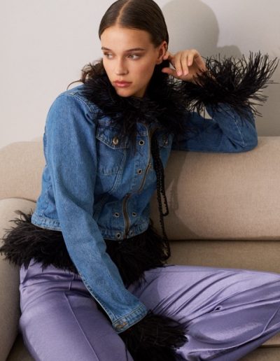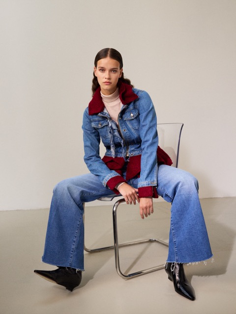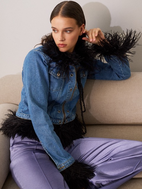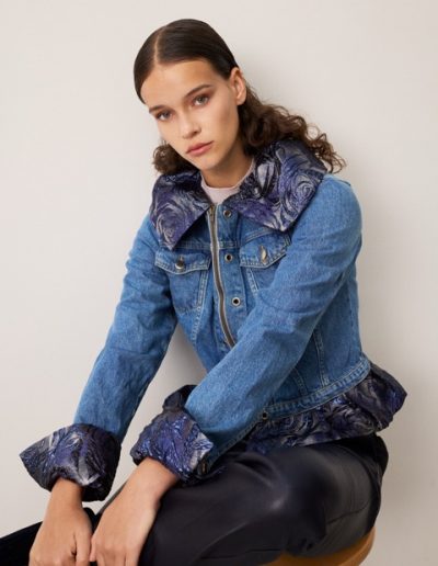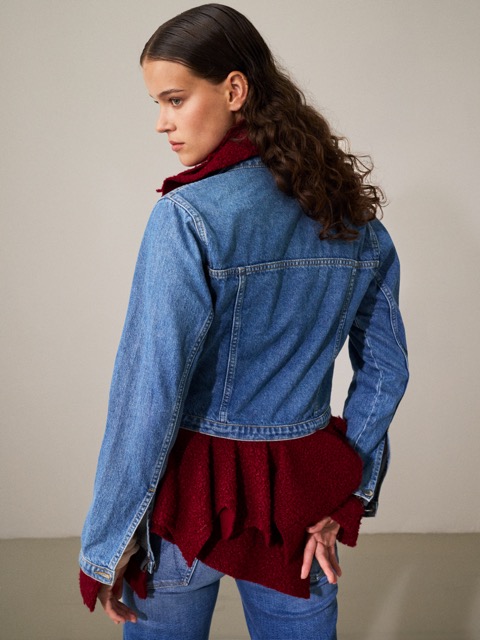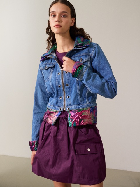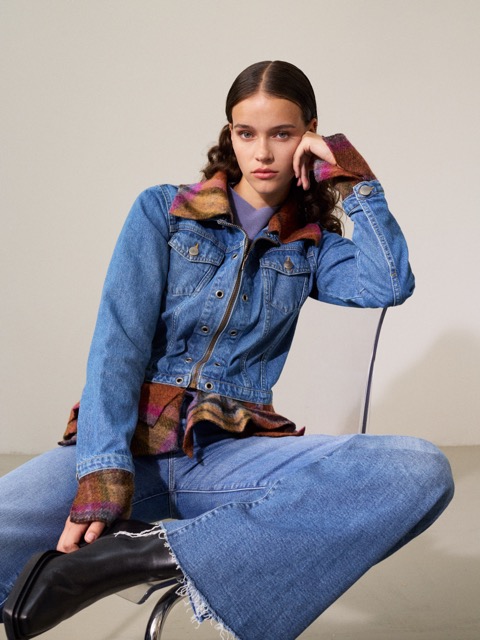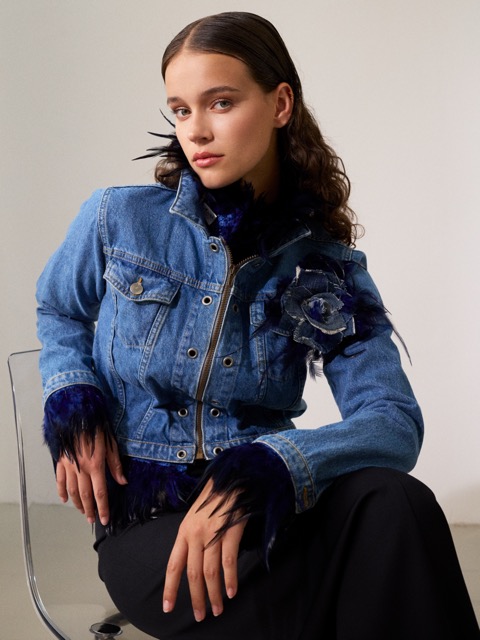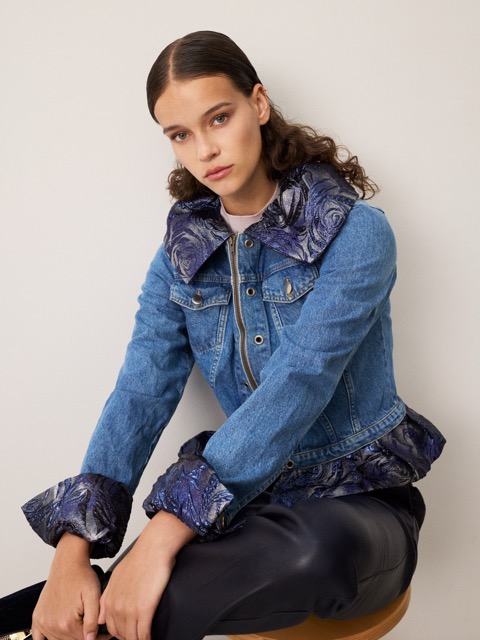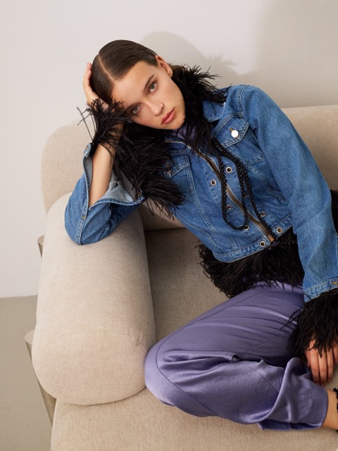 Der japanische Samtstoff zeichnet sich durch seine luxuriöse, weiche Textur aus für einen seidig-schimmernden Glanz. Ein klassischer Auftritt gepaart mit lässigem Jeans-Flair.