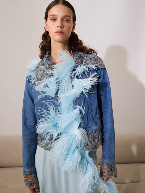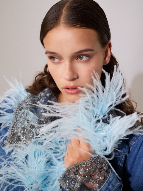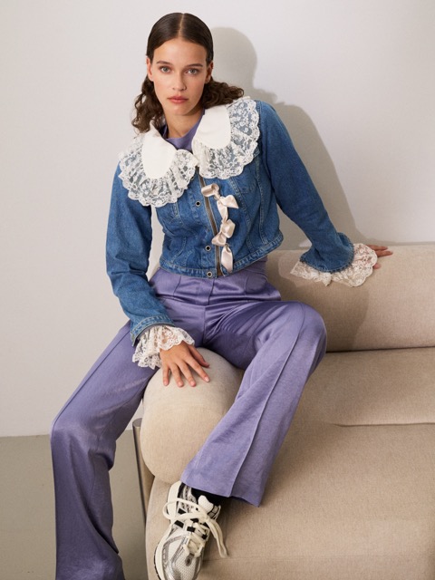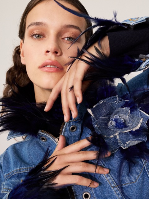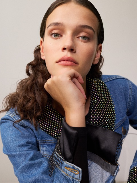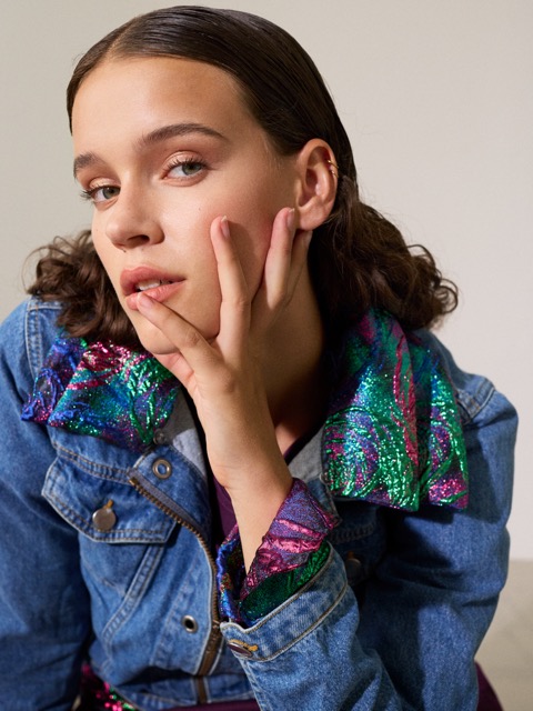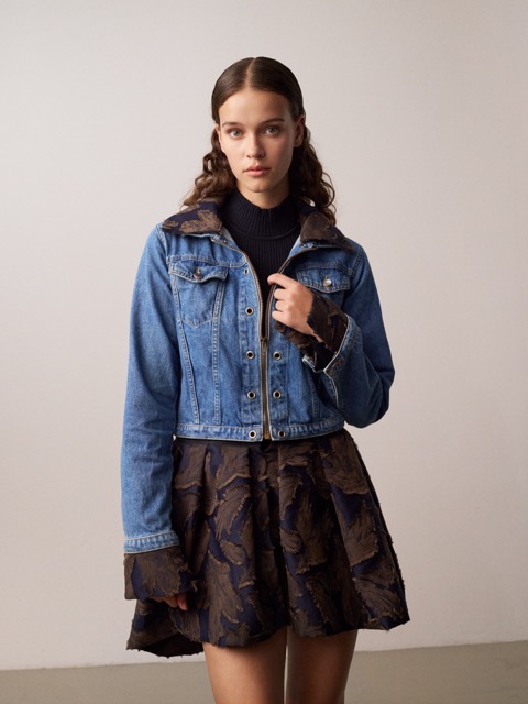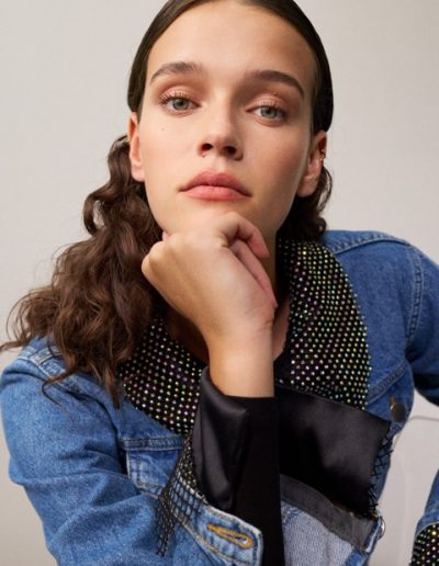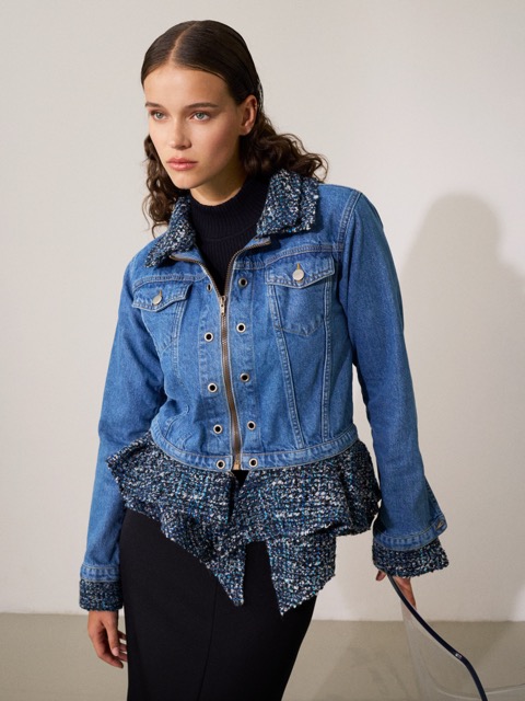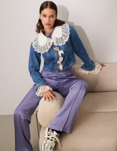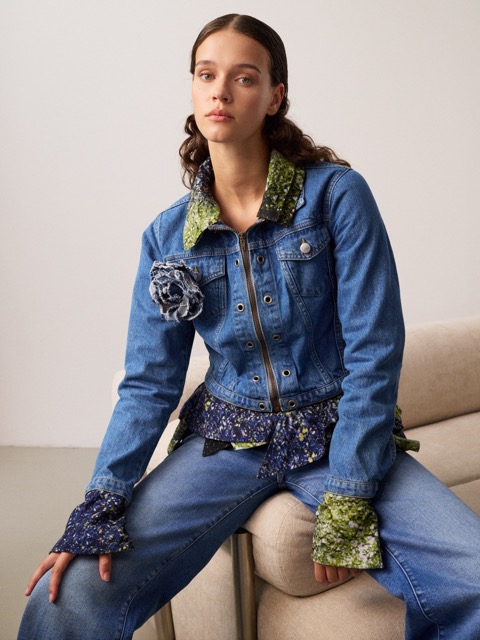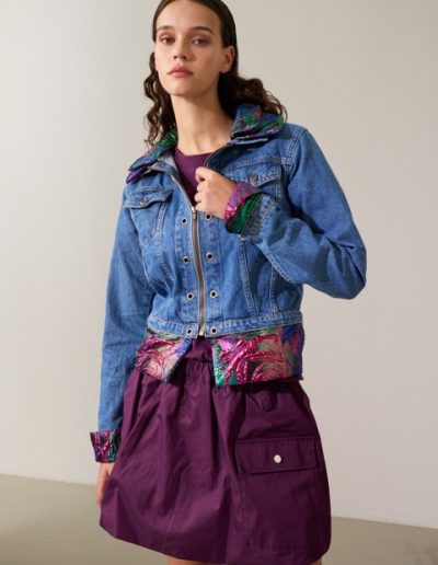 Der japanische Samtstoff zeichnet sich durch seine luxuriöse, weiche Textur aus für einen seidig-schimmernden Glanz. Ein klassischer Auftritt gepaart mit lässigem Jeans-Flair.